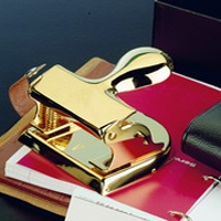 Der 23-Karat vergoldete, schwarz verbrÀmte Perforator von El Casco ist nicht nur ein praktisches Hilfsmittel im Büro, sondern auch ein edles Schmuckstück für jeden stilvollen Schreibtisch. Das Stanzen von Löchern zum Abheften in Aktenordnern oder Terminplanern wird mit dem Luxus-Locher durch die fünffach veredelte, von Hand polierte OberflÀche und den ergonomisch ausgeformten Druckhebel zum optischen und haptischen Genuss.