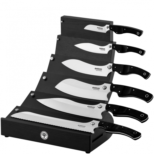 Lieferumfang | 6 Messer der Serie Gorm in schwarz Messerblock der Serie Gorm |