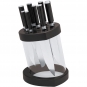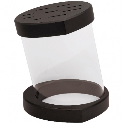 Jedes Kai Shun Messer ist ein Kunstwerk propagiert die Firma KAI und stellt mit diesem Messerblock ihre kunstvollen Objekte in ein würdiges Schaufenster aus luftig leichtem, durchsichtigem Acrylglas und edlem, schwarzem Holz. Das exquisite Design der stilvollen SÀule bringt die glÀnzenden Klingen der Damaszener-Stahlmesser ausgezeichnet zur Geltung und bietet durch die ausgefallene Kombination von warm schimmernden Holz, elegant mattiertem Glas und strahlend funkelndem Stahl einen einzigartigen Anblick.